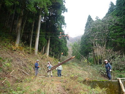 来年、送電線線下の杉を大量に伐採するので、当該の技を使って搬出する計画。新たに児童等の自然体験メニュ-に加えよう。