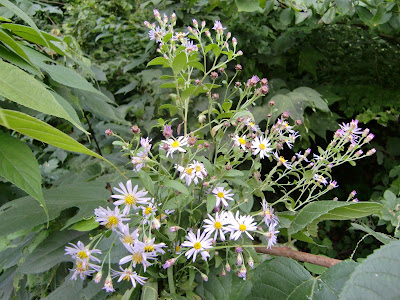貴賓高いアザミ草、つぶつぶで小さいながら愛らしいシデ草、白い花の野菊?実りだした野ブドウ。