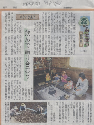 北日本新聞の子ども新聞欄に、「森で遊ぼう」バタバタ茶編が掲載されていた。バタバタ茶の作り方の他、天日干しの乾燥状況や児童等がお茶を飲んでいる写真と併せて、標題「飲んで語り合おう」でした。